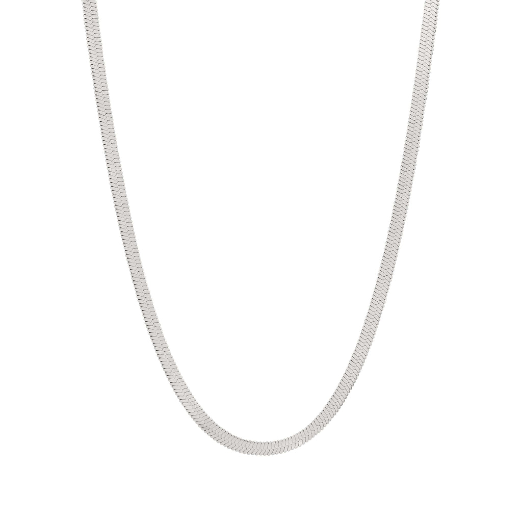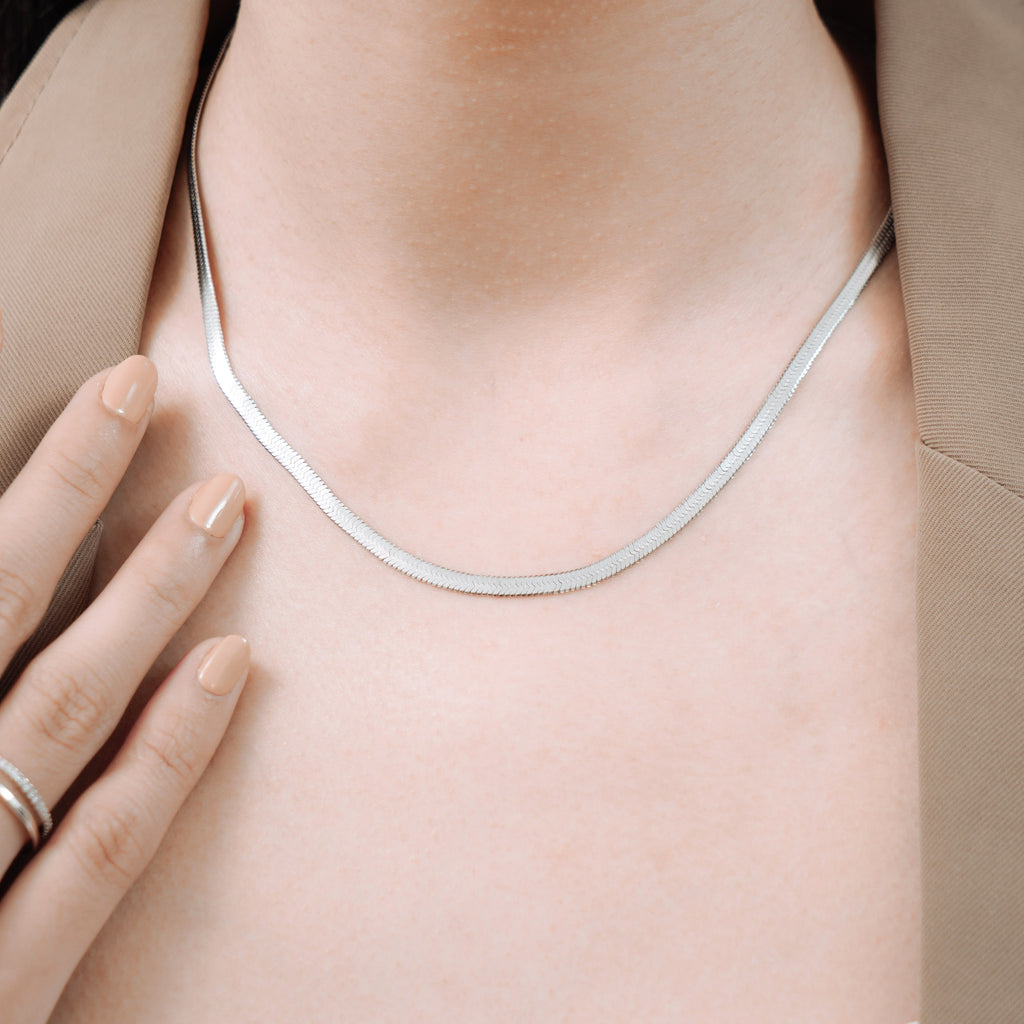 Made with flattened chain links, this herringbone design exudes a sleek and modern style. Put on this necklace for an elegant and sophisticated look.