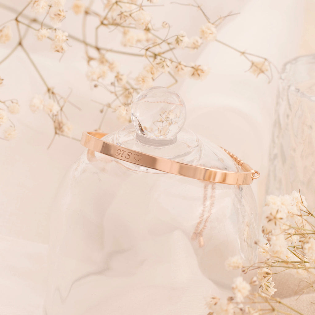 The Gwyneth bracelet features a curved bar that rests comfortably on the wrist. Sliding bead allows adjustment and secures the bracelet for a perfect fit.